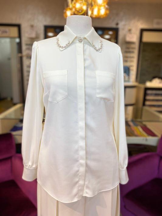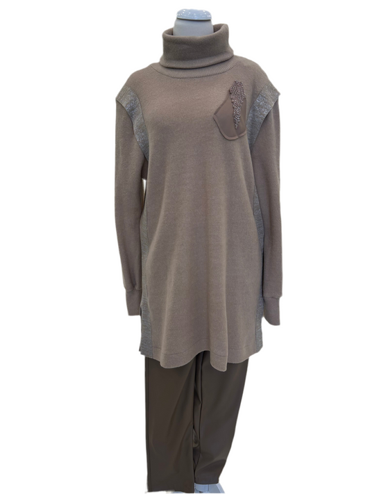 1302 Merserize Kalem Etekli Takım Düğme Detay Bej