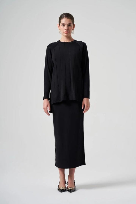 1303 Üzeri Çizgi Detaylı Siyah Etekli Takım
