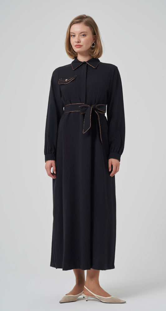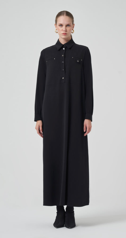 1422 Polo Yaka Merserize Elbise Siyah