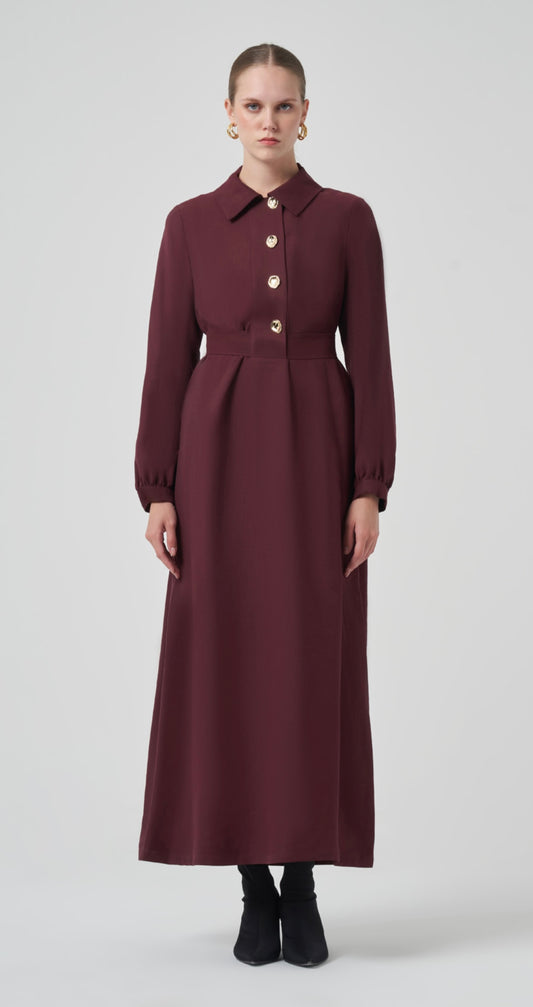 İndirim1423 Polo Yaka Elbise Bordo