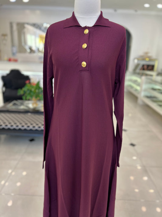 1422 Polo Yaka Merserize Elbise Mürdüm