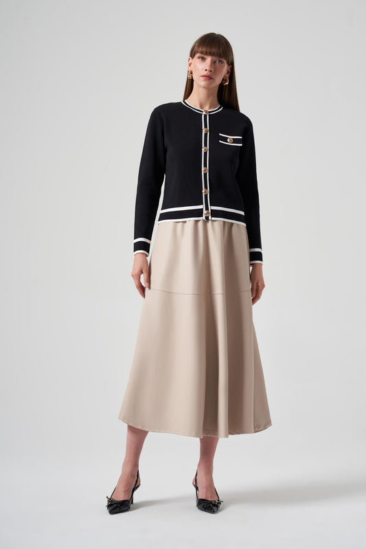 1303 Üzeri Çizgi Detaylı Siyah Etekli Takım