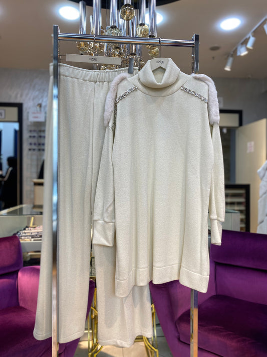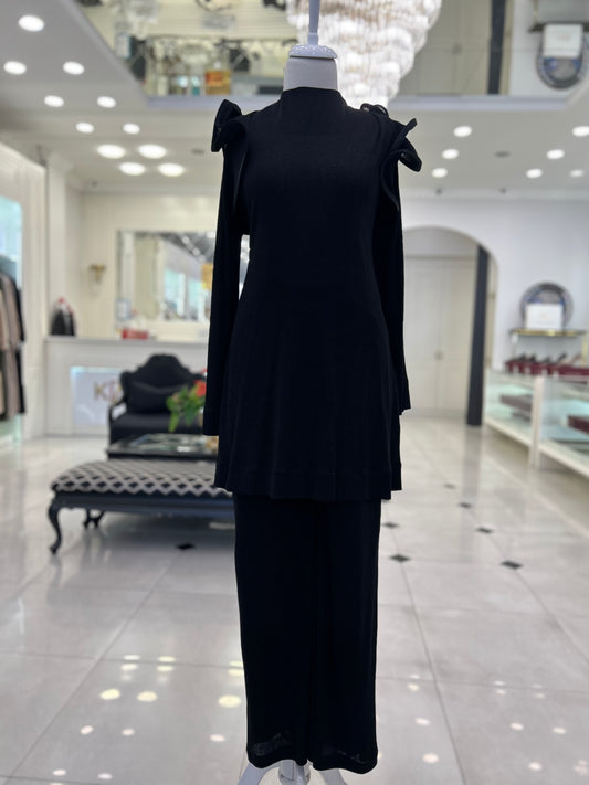 Saten Garnili Çelik Triko Takım Siyah