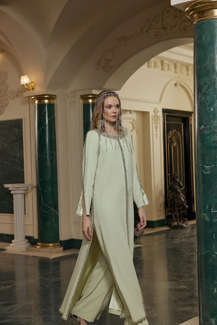 Taşlı, yanları yırtmaçlı ikili takım