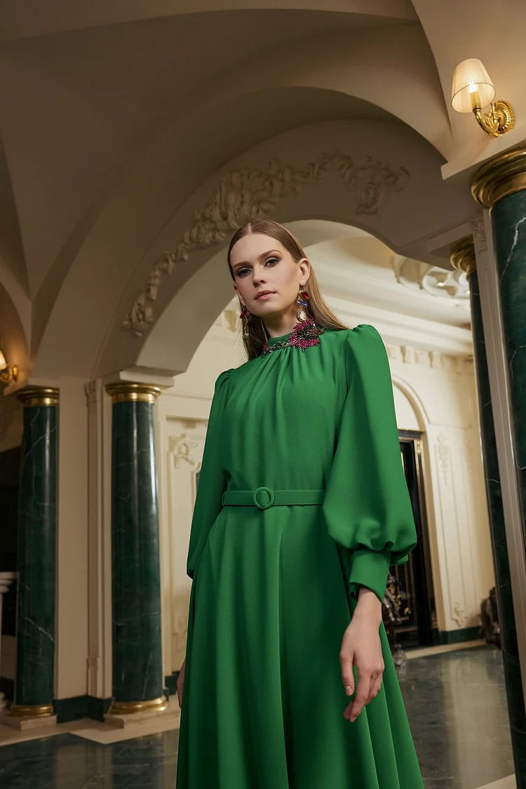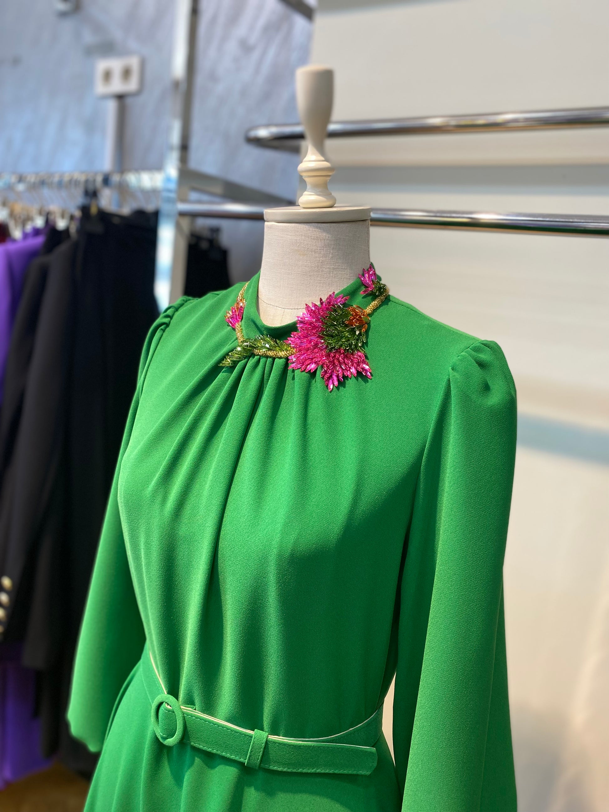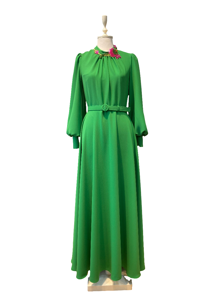 Krep kumaştan oluşan tesettür abiye elbisesi