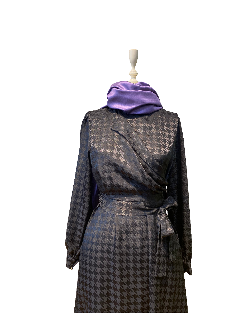 Kazayağı Desenli Şık Zümrüt Yeşili Elbise