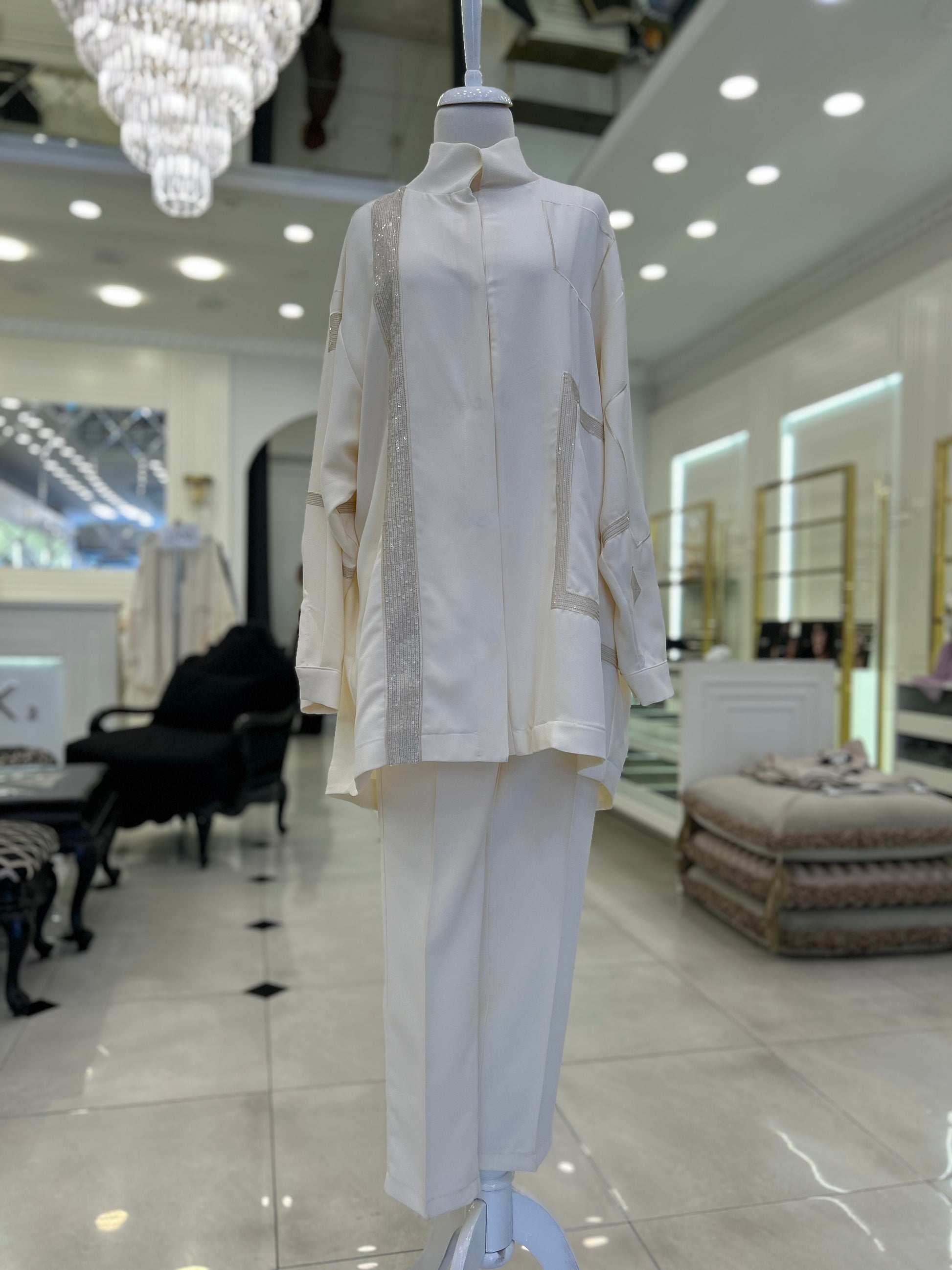 Payet detaylı havuç kesim pantolonlu takım