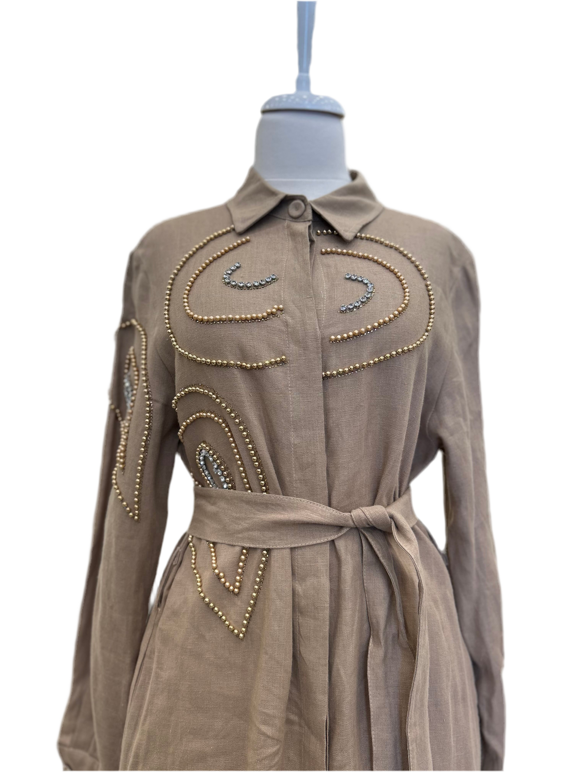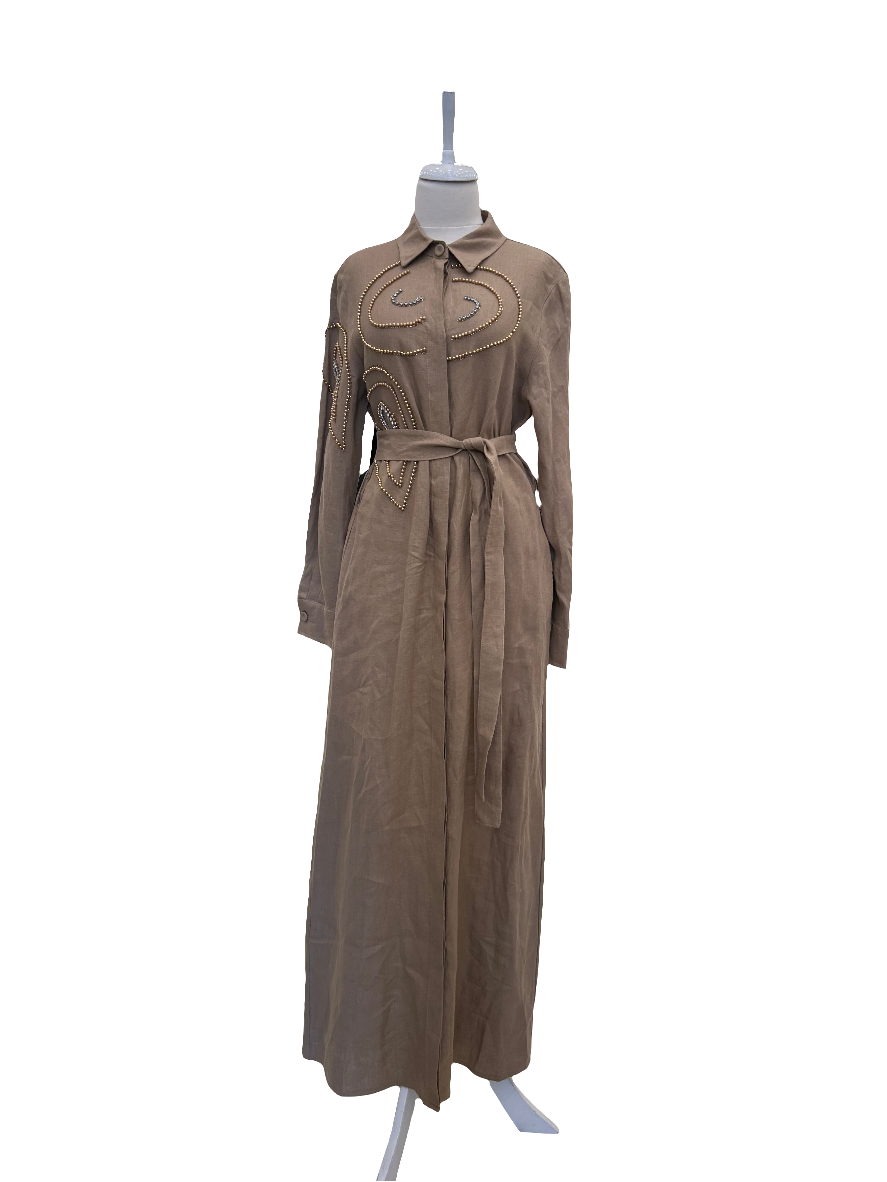 Çakma Taş Detaylı Keten Elbise