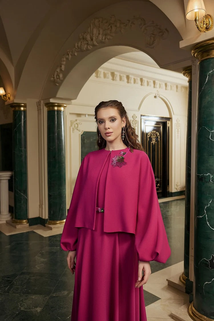 İç elbisesi jile formuna sahip olup dışı işlemeli ceket olan abiye takımımız