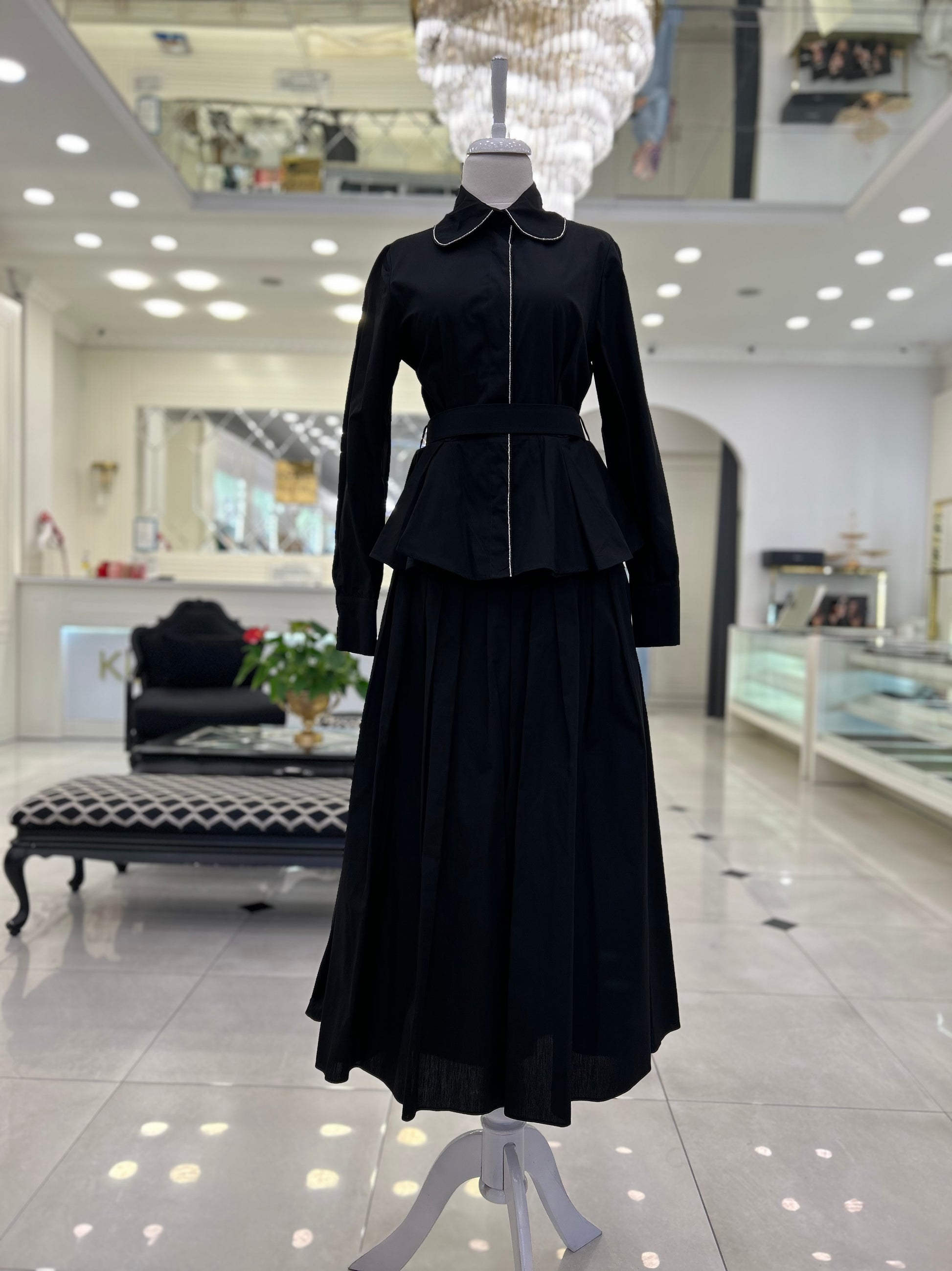 2043 Ageo Poplin Etekli Takım Siyah