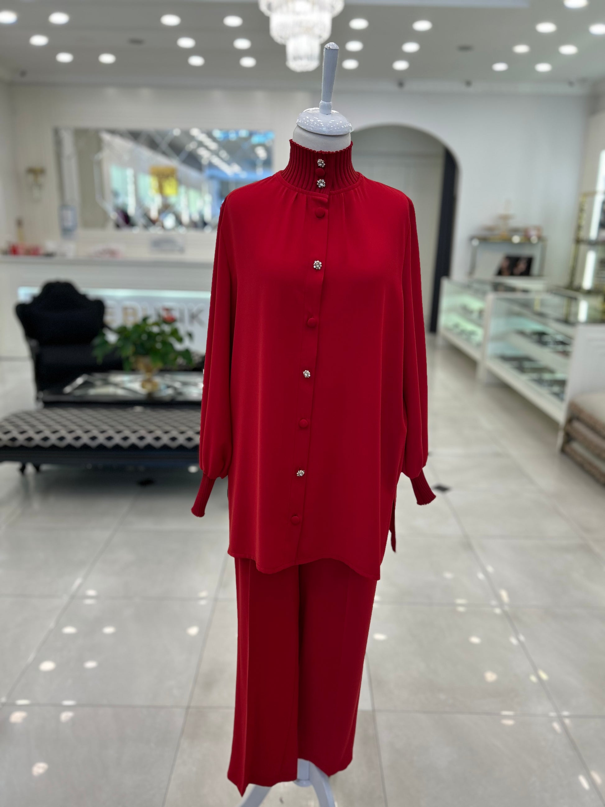 72032 Yaka ve Kol Triko Garnili Takım