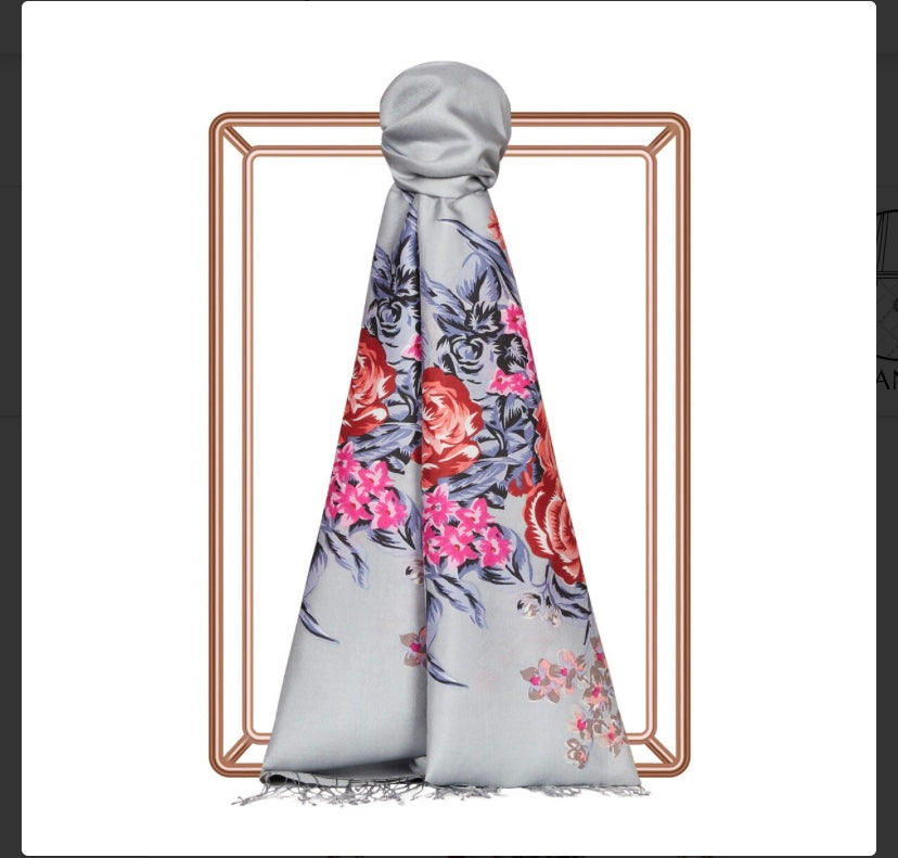 Gri Saray Bahçesi Desenli ipek Şal