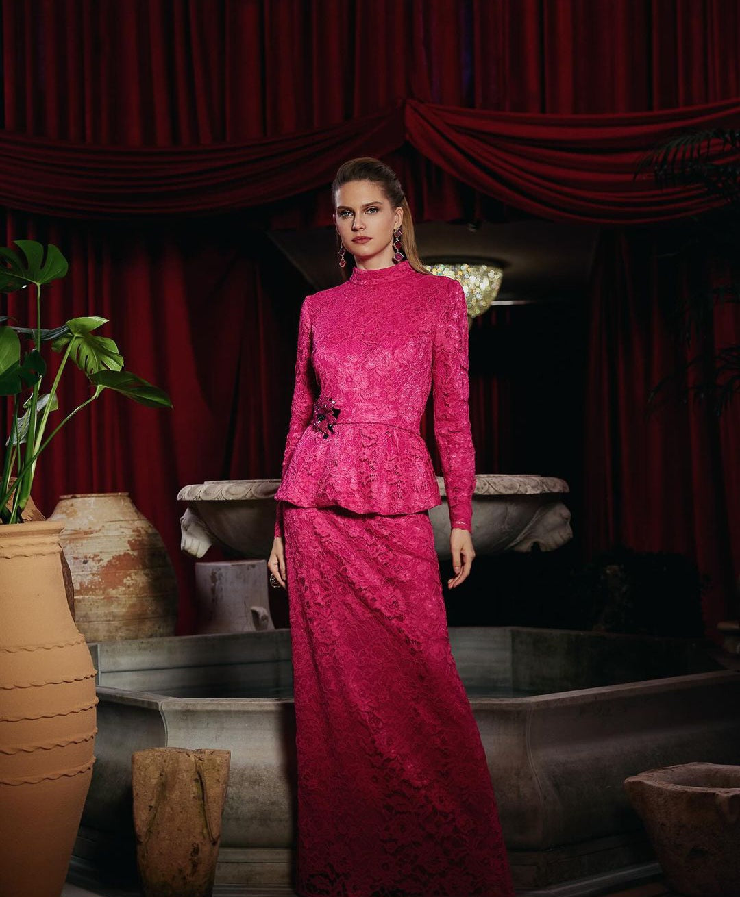 Jamila Sarah Fuşya Dantel Takım